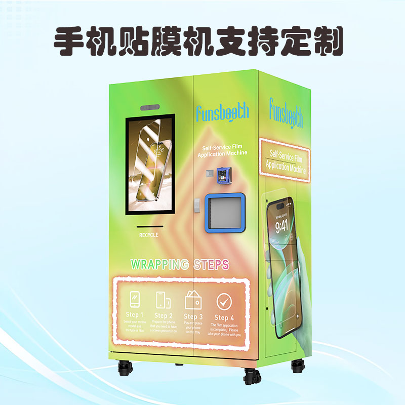 利恩研发的全自动手机贴膜机可以实现,给手机自动贴钢化膜,无需人工干预。只要把手机放入机器中,等待3分钟就可以贴好。支持现金,扫码,银行卡支付。